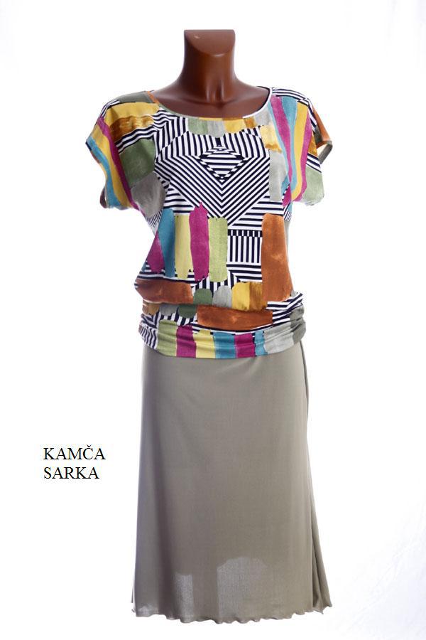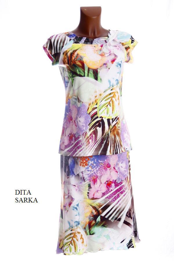 Nová kolekce je zaměřená na nabídku šatů, která je velmi široká, neboť šaty se v posledních letech staly velice oblíbeným a našimi zákaznicemi hodně požadovaným letním oblečením. Nabízíme pouzdrové šaty v několika střihových variantách a mnoha dezénech. Připravili jsme šaty vhodné pro malé letní společenské příležitosti, dále šaty se špagetovými ramínky, šaty tílkové vhodné pro horké letní dny a čas dovolených. Naše zákaznice si mohou vybrat z mnoha druhů střihů i módních potisků. Předností nabízených šatů jsou zajímavé a dobře padnoucí střihy a zároveň jejich cenová dostupnost. Za velice příznivé ceny firma nabízí stále oblíbené sukně a kalhoty z polyesterových úpletů, které díky kvalitnímu střihovému zpracování dobře padnou i v nadměrných velikostech, s pasem zpracovaným do gumy.