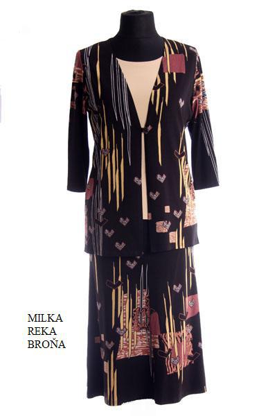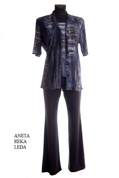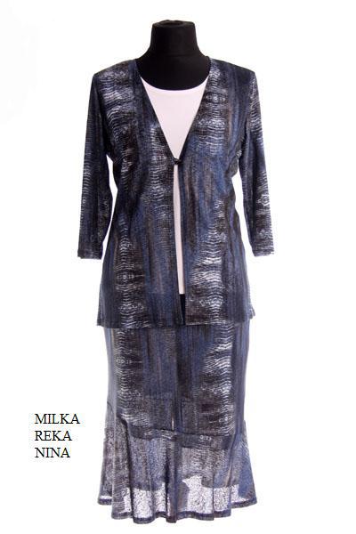 Řada tisků a materiálů v kolekci je vhodná na oblečení pro chladné dny nadcházejícího podzimu, nebo nalezne své uplatnění i při malých společenských událostech. Stále žádané a dobře prodejné jsou pouzdrové šaty, které se v kolekci objevují v několika vzorech a mnoha dezénech. V nabídce nechybí ani řada silnějších, hřejivých úpletů, které nacházejí uplatnění na puloverech a tunikách. Za velice příznivé ceny firma nabízí i stále oblíbené sukně a kalhoty z polyesterových úpletů, které díky kvalitnímu střihovému zpracování dobře padnou i v nadměrných velikostech, s pasem zpracovaným do gumy.