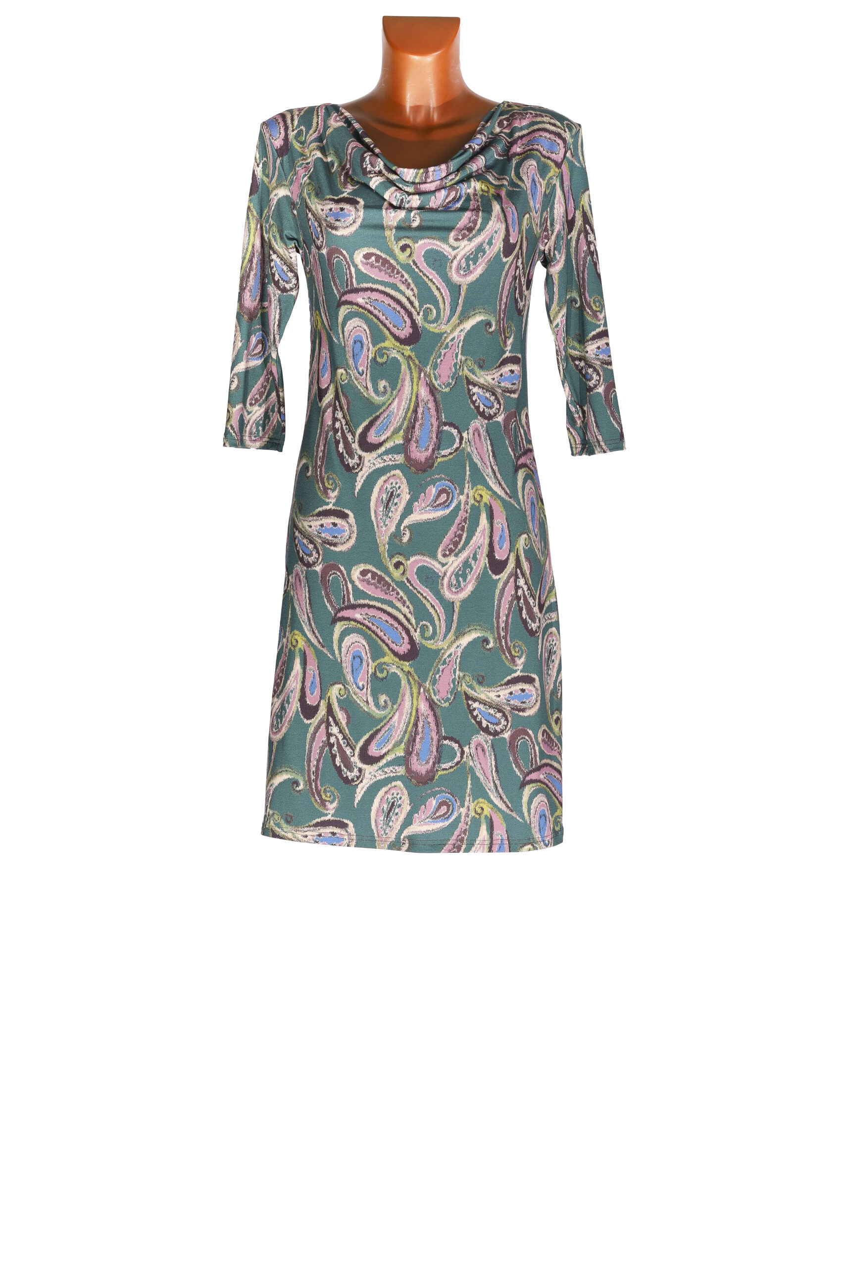 Dámské pouzdrové šaty s vodou a 3/4 rukávem. Na zadním díle záševky, pouzdro mírně rozšířené, střih vhodný i pro větší velikosti.