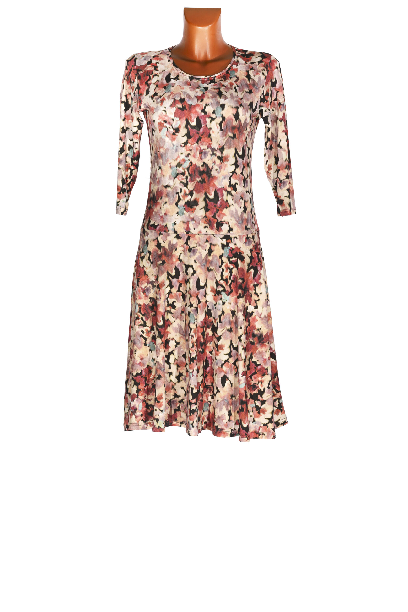 Dámské šaty s 3/4 rukávem a kolovou sukní, kulatý výstřih.